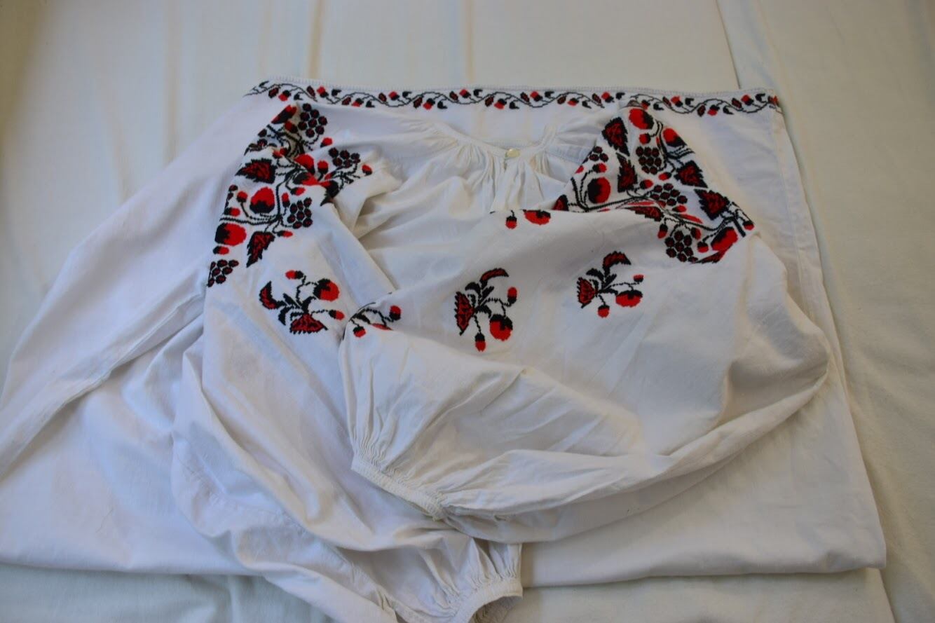 約100年前にウクライナの女性たちが結婚式などの祭事に着ていくために、一着づつ手縫でもちろん手刺繍のハンドメイドです。