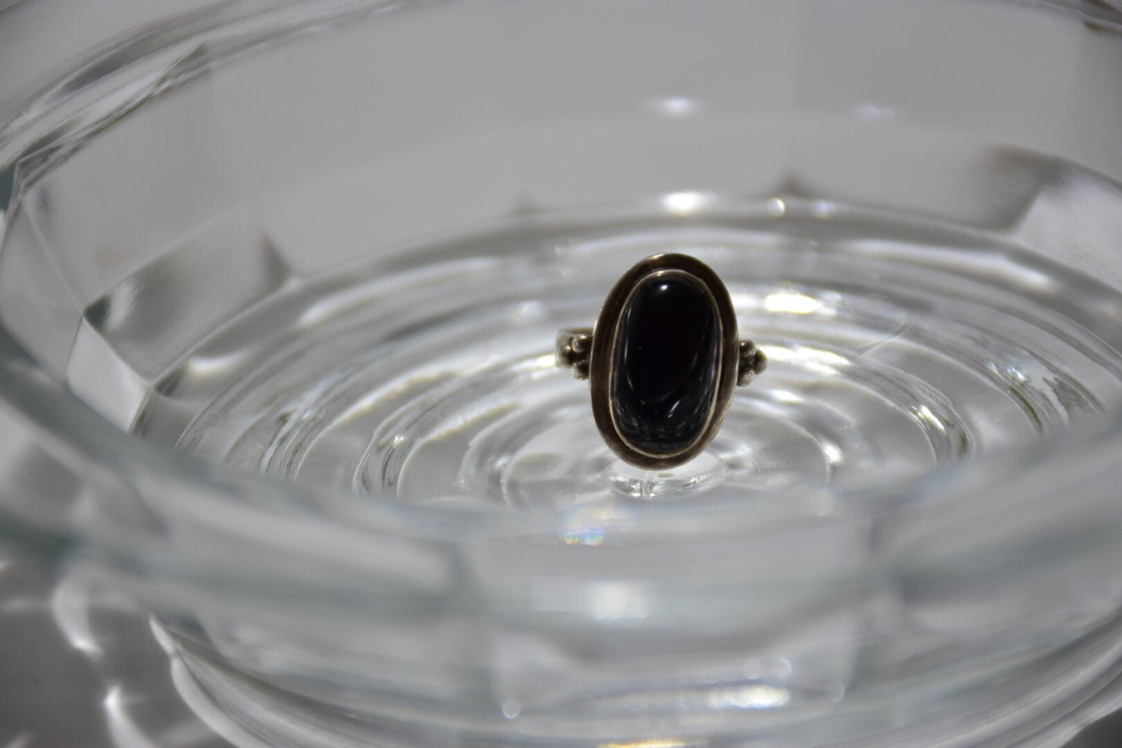 このタイプのOnyx ringは、お花をモチーフにしたような、丸みのあるストーンに、丸みのある silverの装飾がサイドにされております。