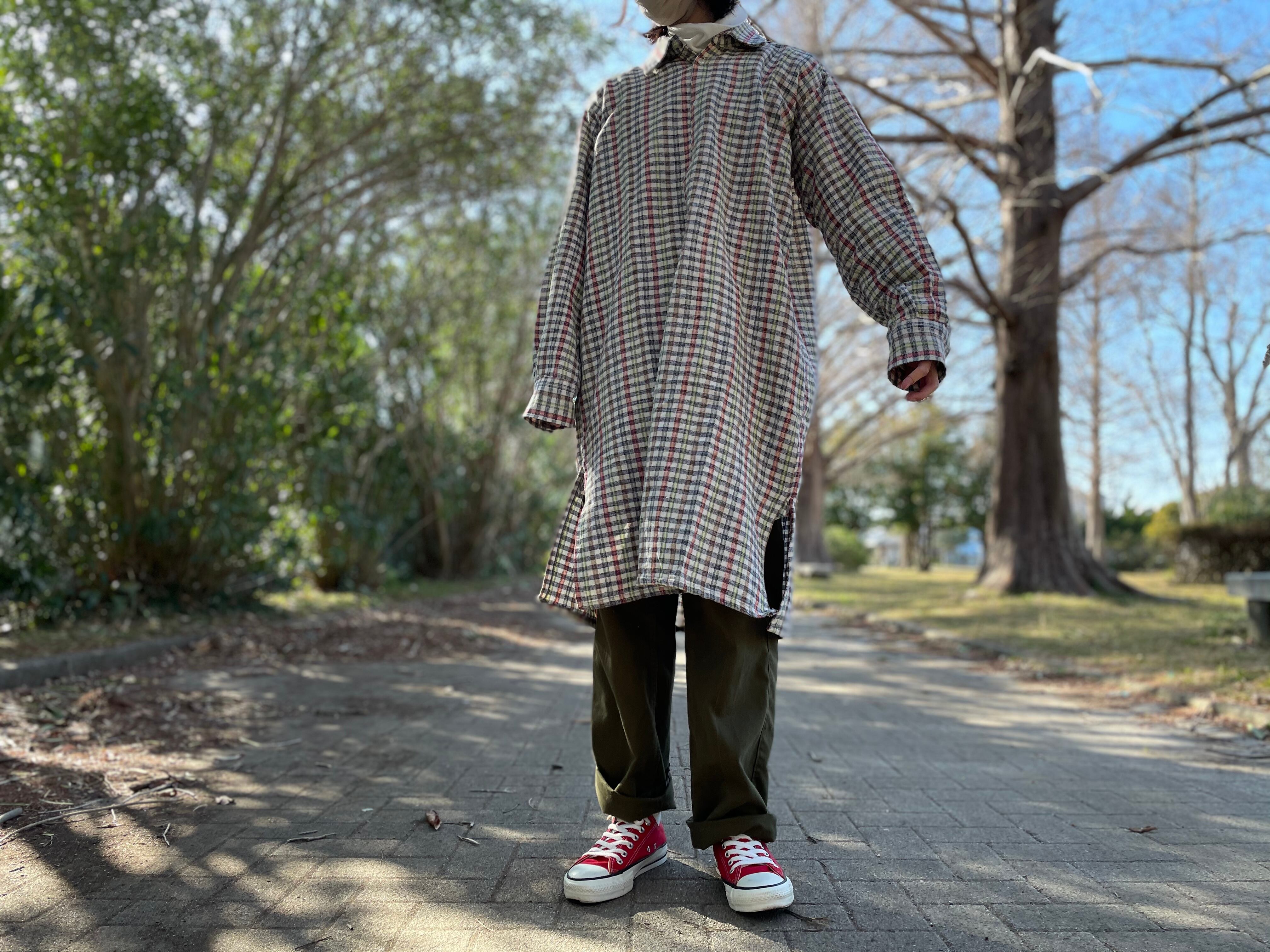 ⑨70's german linen grandpa shirt (dead stock)