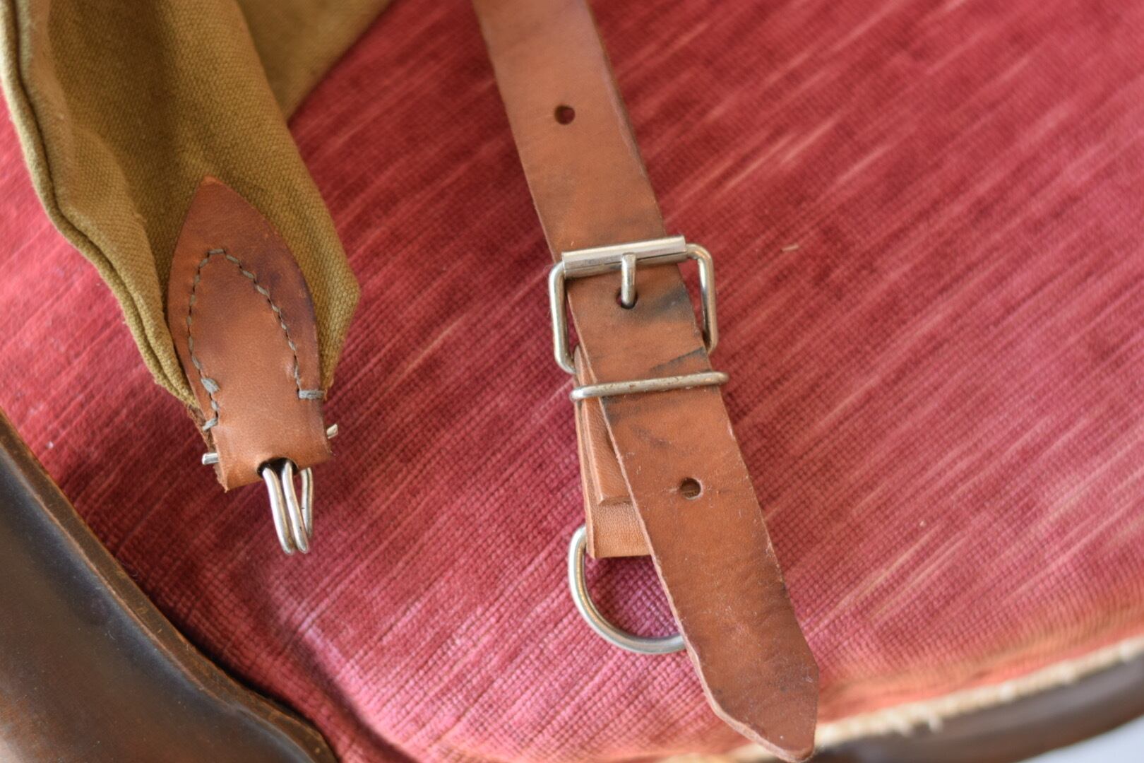 レザー部分が少しひび割れ、硬化してきています。レザー部分のメンテナンスはしたものの硬い部分も存在します。長くお使いいただくことで、革が柔らかく使いやすくなっていくと思います。