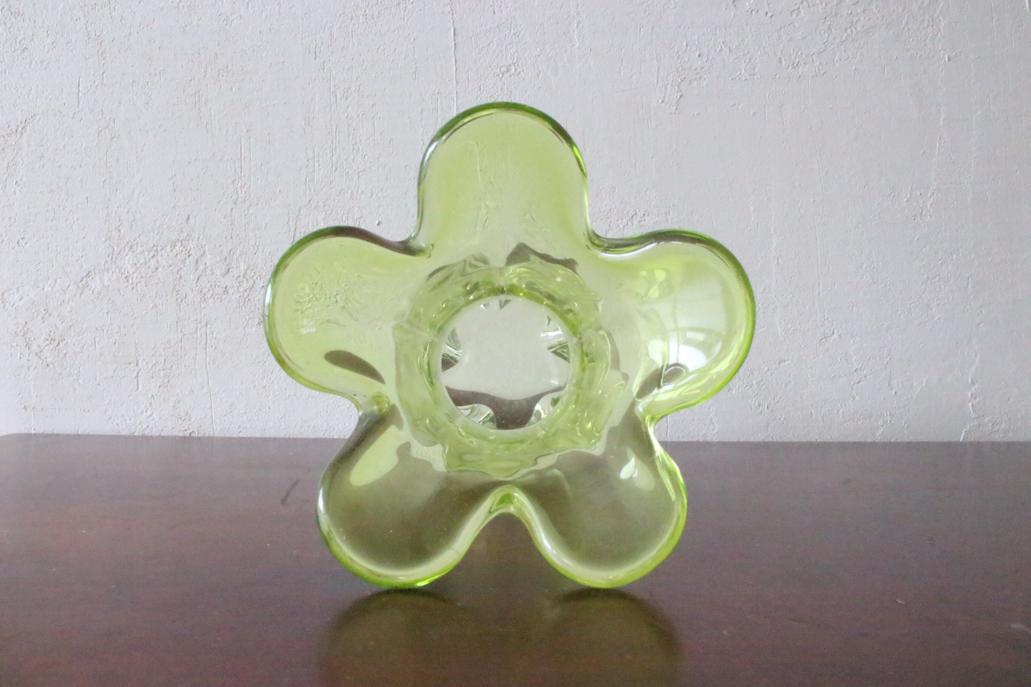 黄緑の透明感あふれるガラスでできた花瓶は、春夏の爽やかな季節にぴったりです。